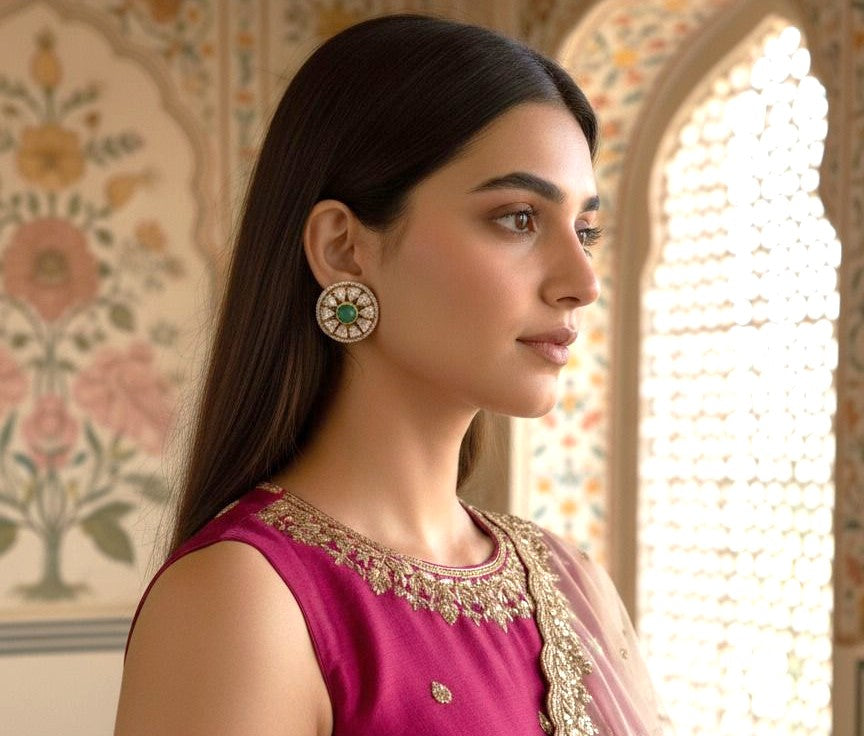 Gracefully handcrafted, these Polki studs reflect timeless tradition with a radiant, antique charm. Perfect to elevate both festive and everyday looks with effortless elegance.