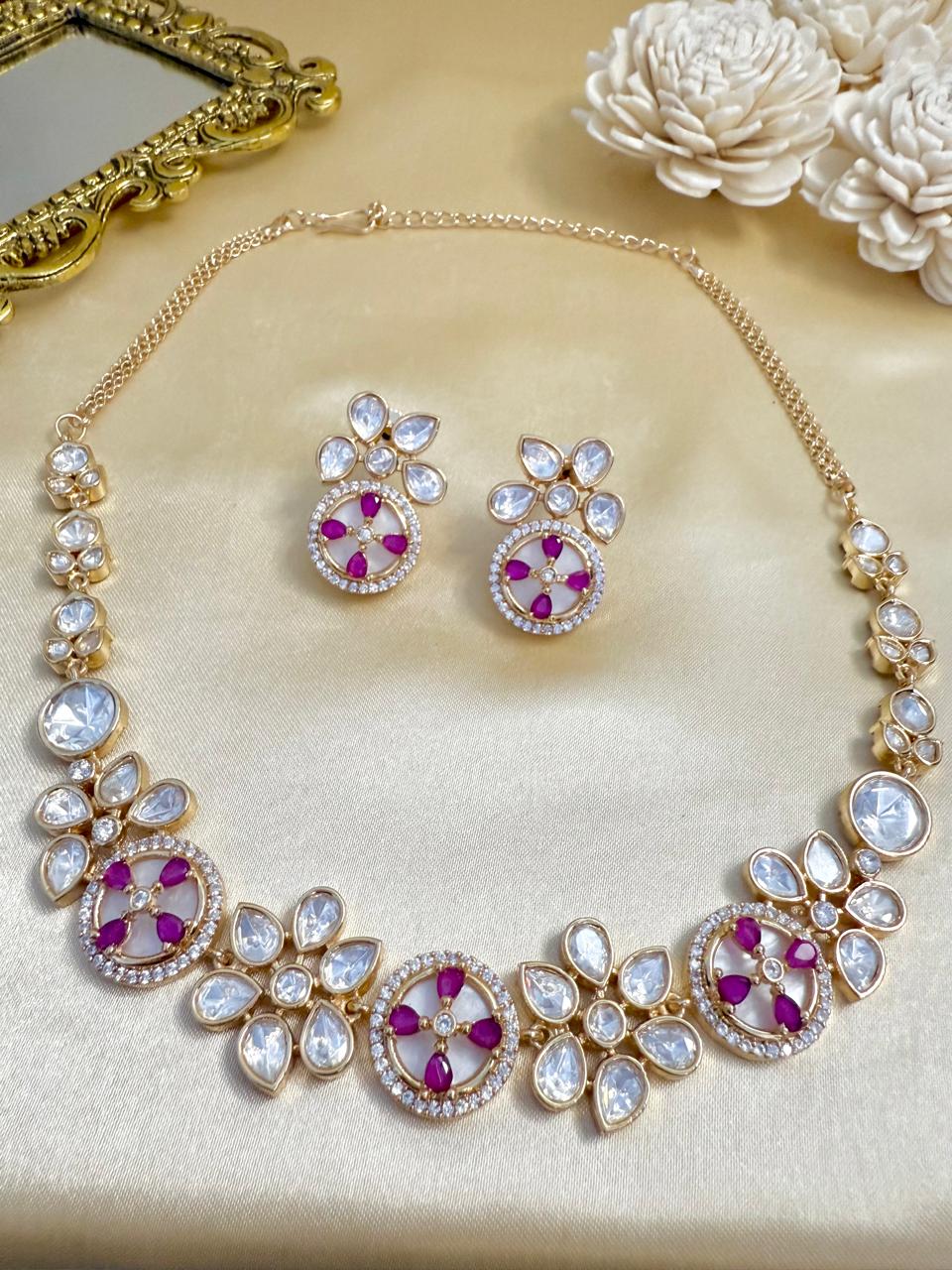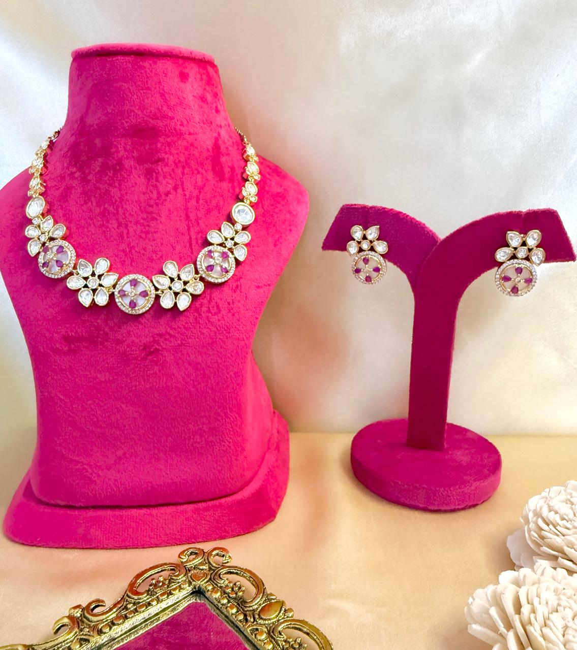 Elegant and understated, this Polki short necklace set pairs delicate craftsmanship with timeless charm — perfect for intimate occasions and festive soirées.