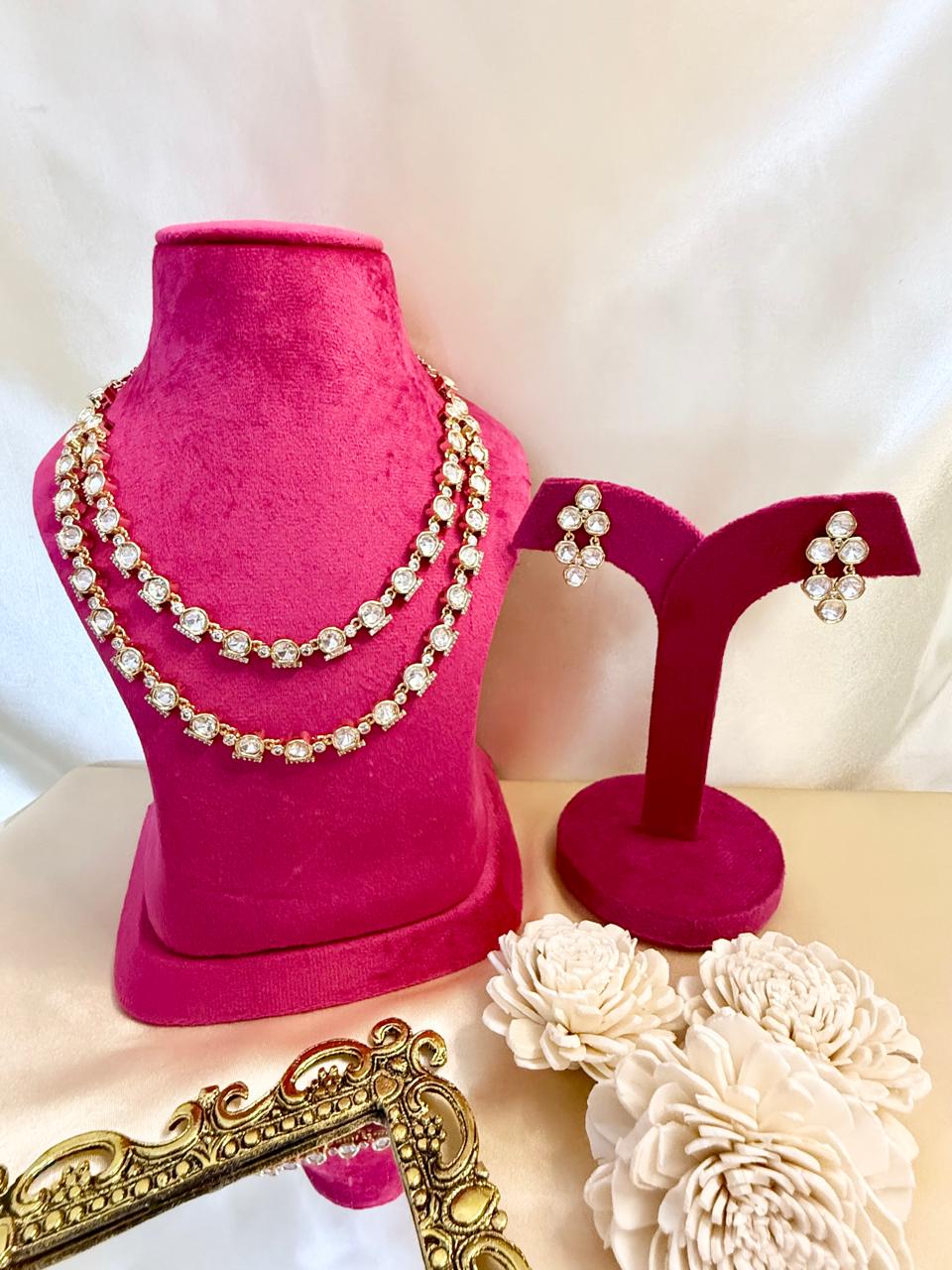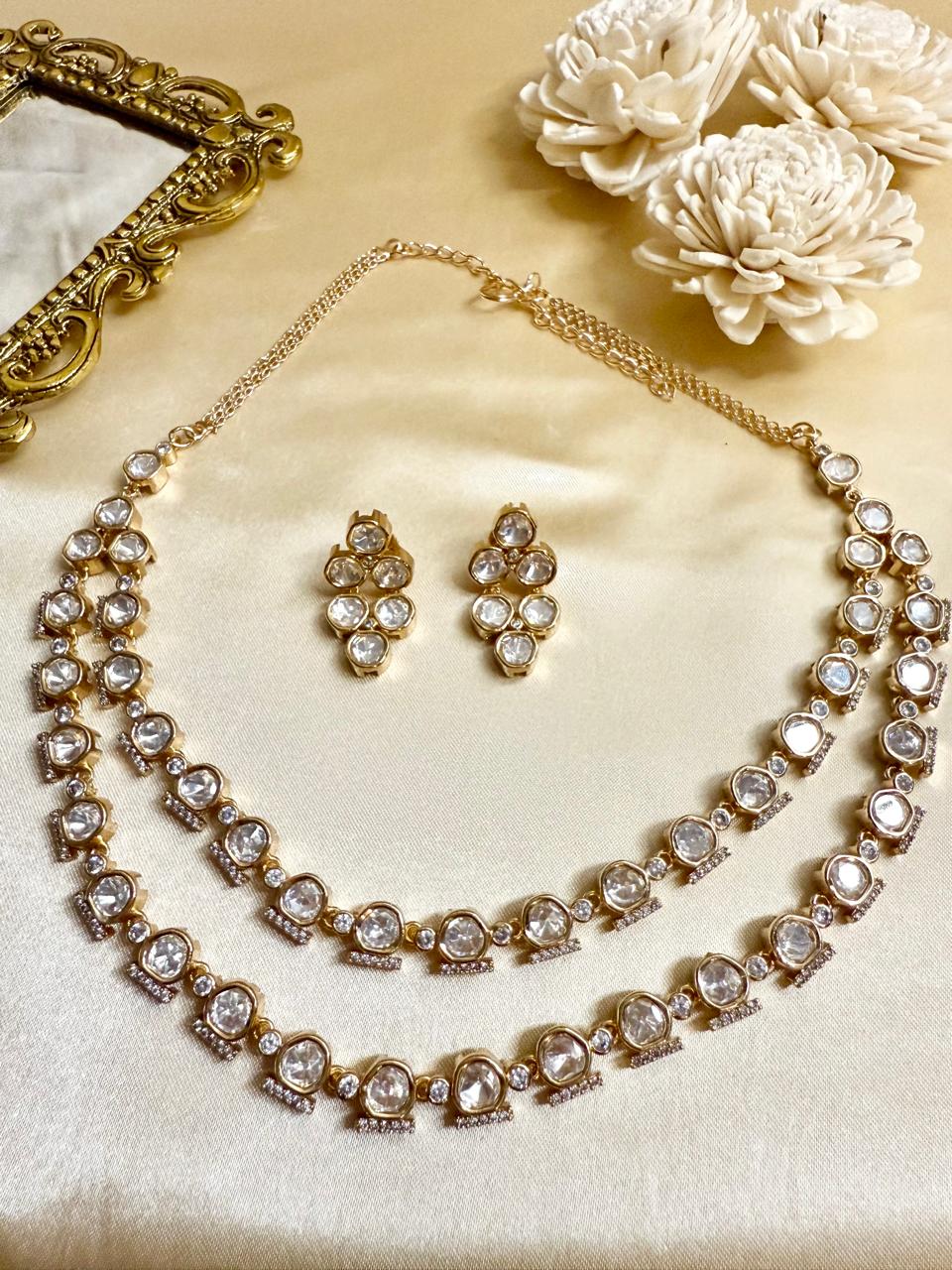 Featuring two graceful layers of Polki charm, this necklace offers a rich, regal look in a compact silhouette — perfect for elevating both traditional and contemporary outfits.