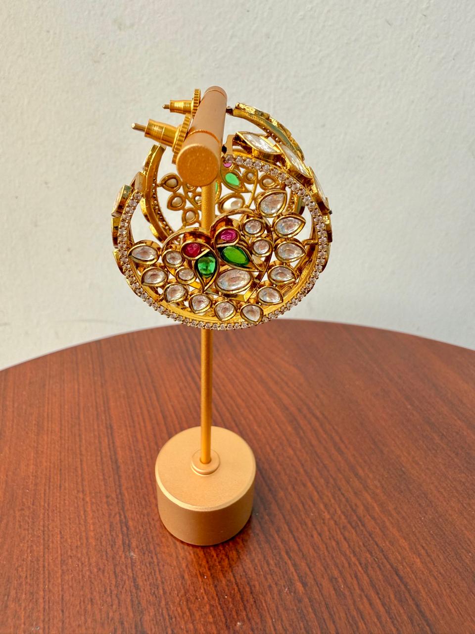 These Polki baalis exude vintage elegance with their intricate design and graceful curves. A versatile statement piece to complement both ethnic and fusion styles.