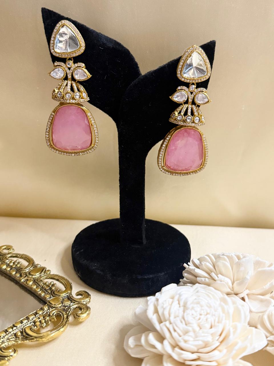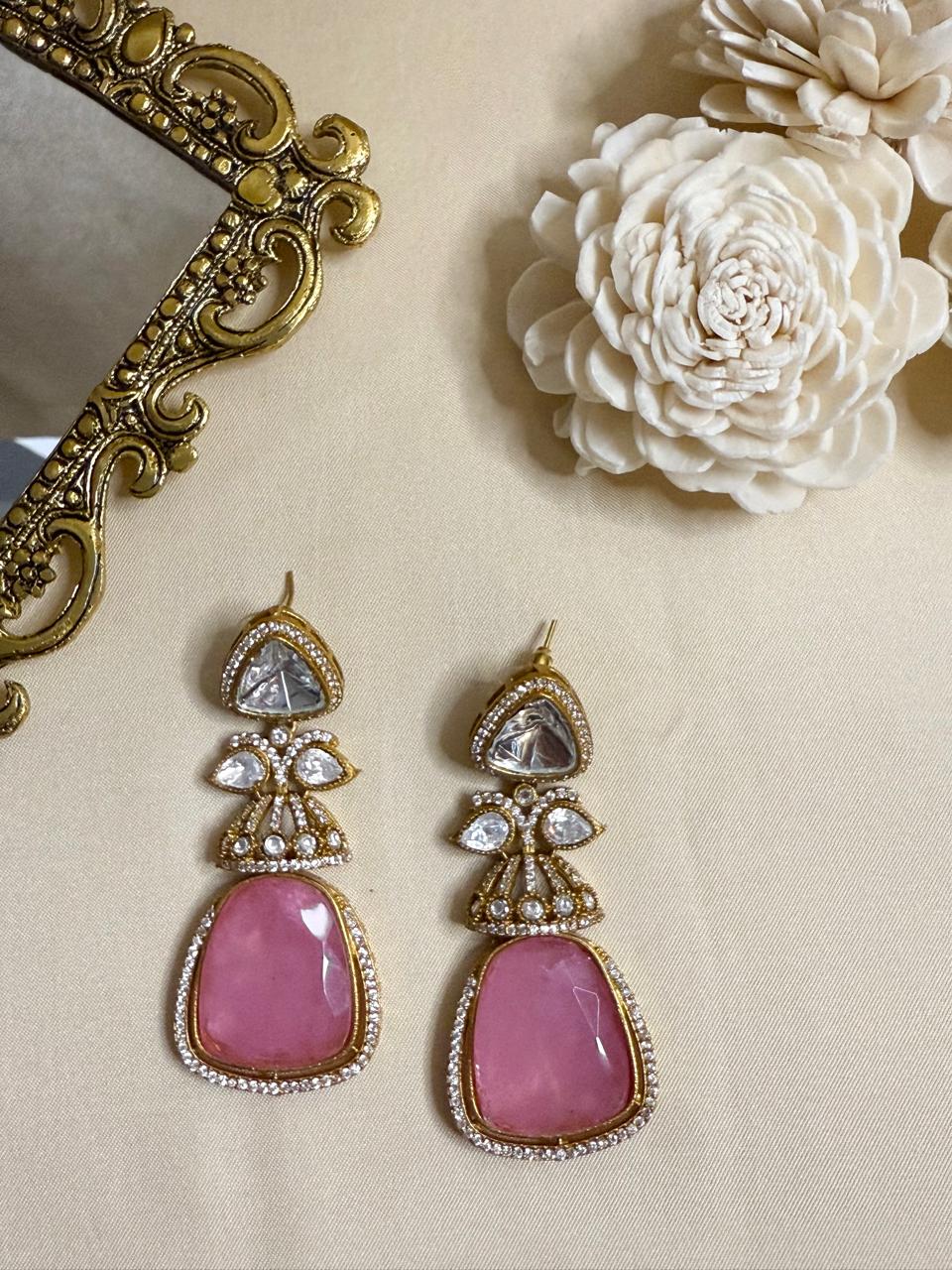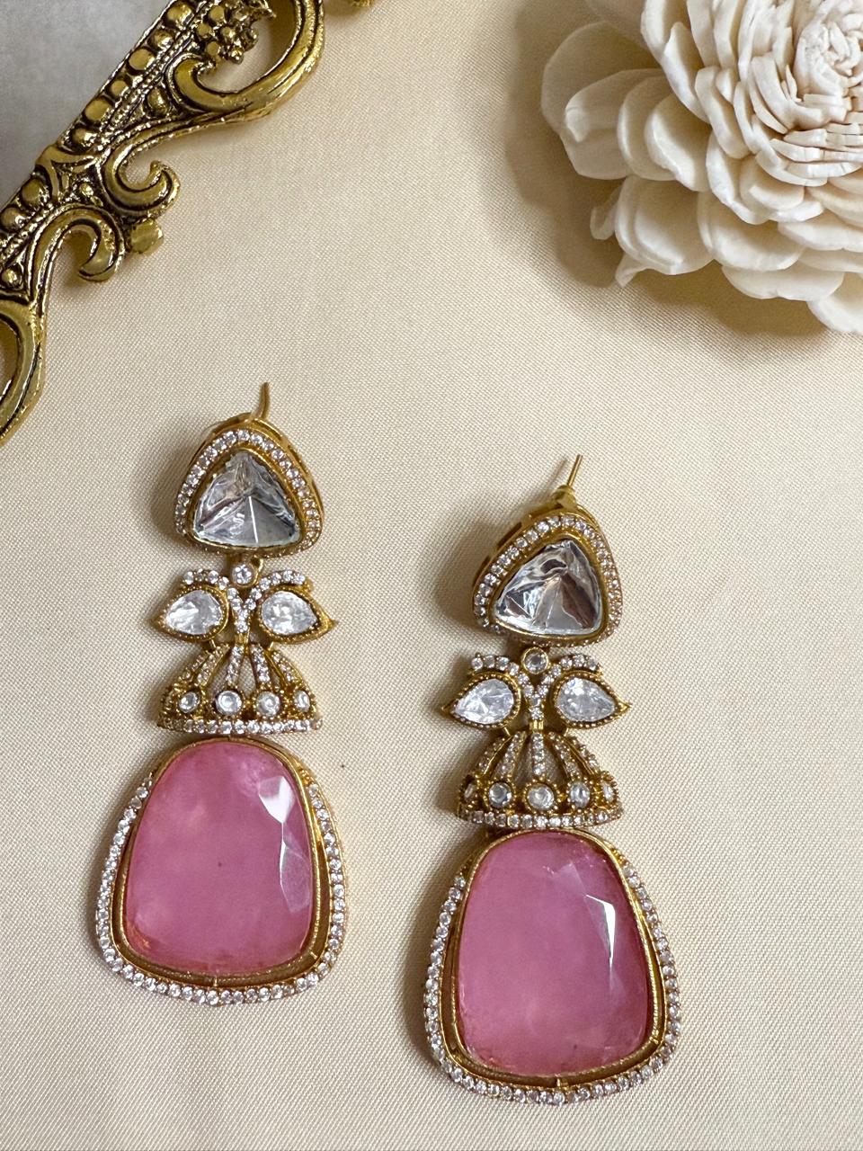 Dia stone danglers - Pink