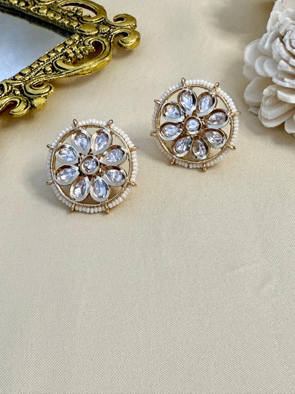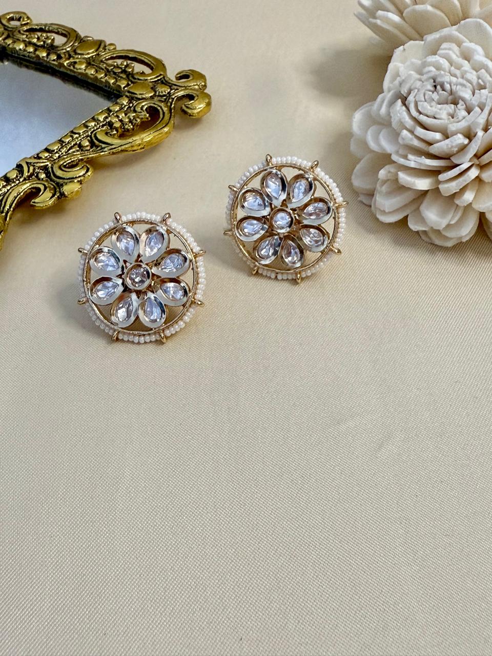 Gracefully handcrafted, these Polki studs reflect timeless tradition with a radiant, antique charm. Perfect to elevate both festive and everyday looks with effortless elegance.