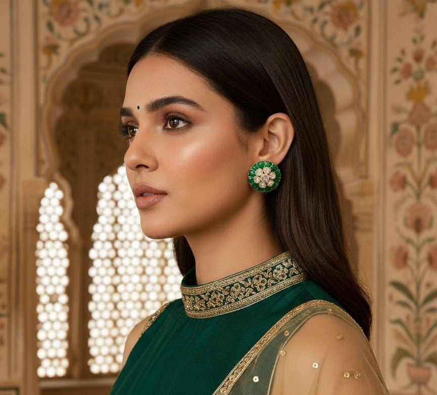Gracefully handcrafted, these Polki studs reflect timeless tradition with a radiant, antique charm. Perfect to elevate both festive and everyday looks with effortless elegance.