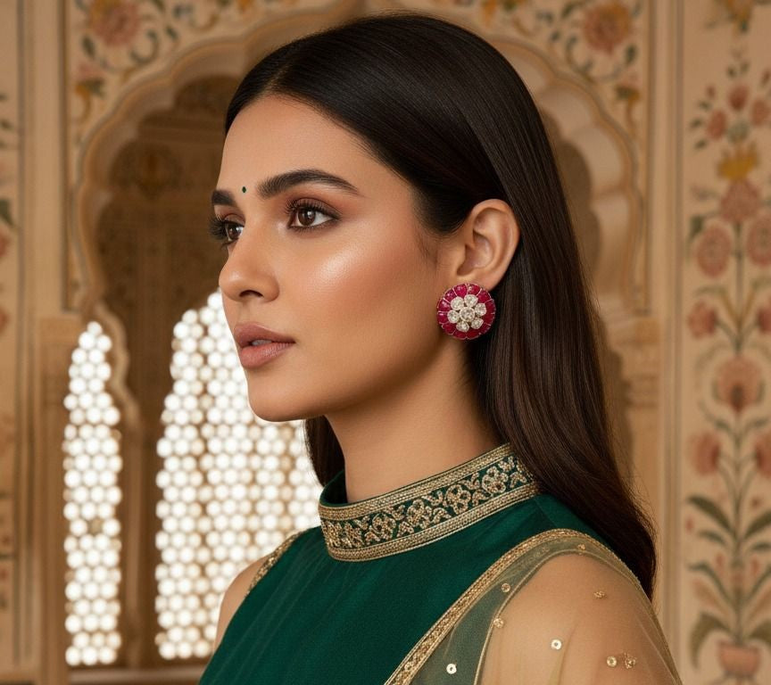 Gracefully handcrafted, these Polki studs reflect timeless tradition with a radiant, antique charm. Perfect to elevate both festive and everyday looks with effortless elegance.
