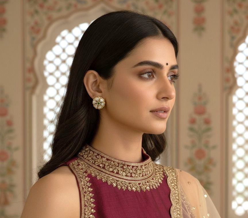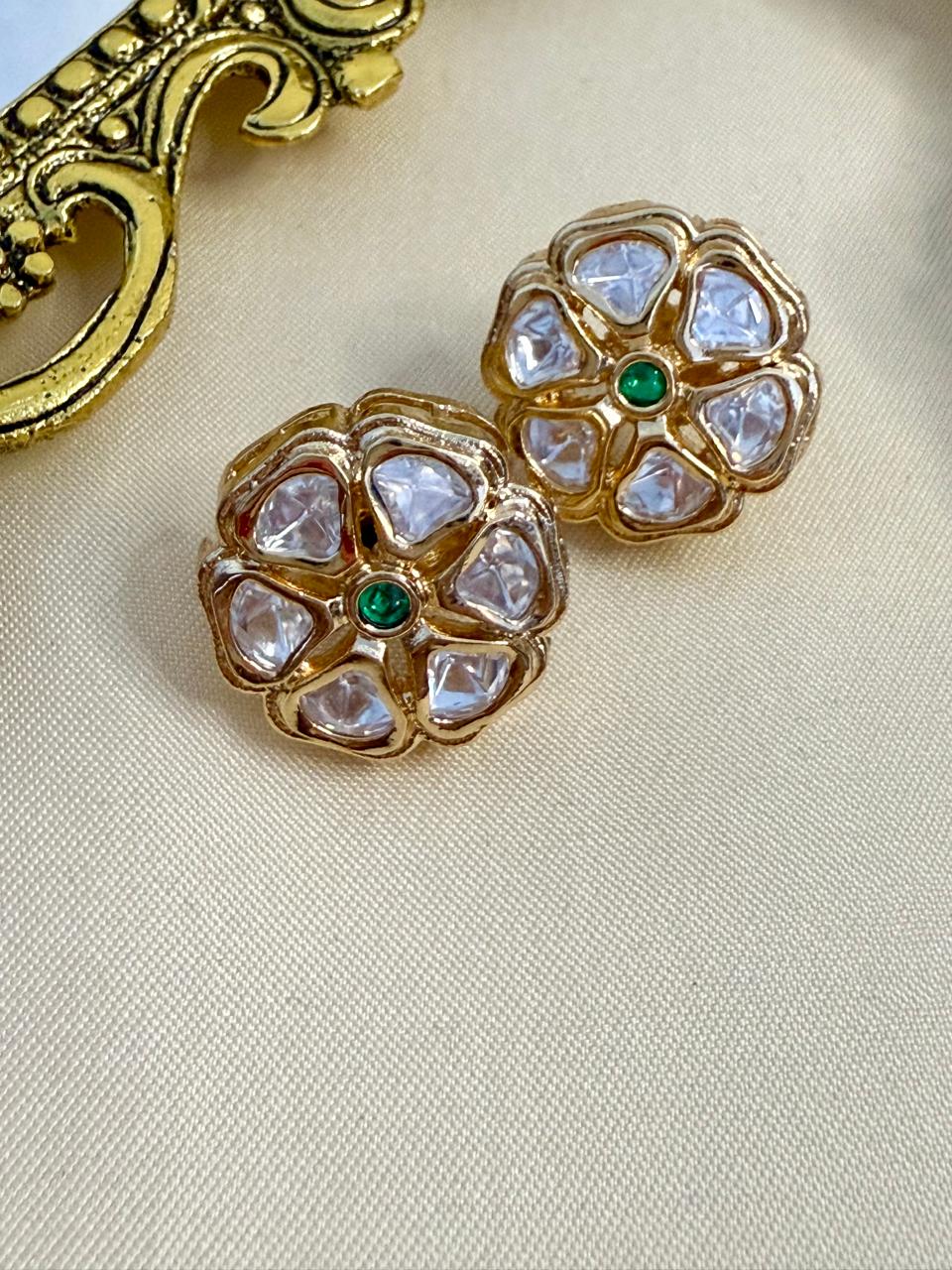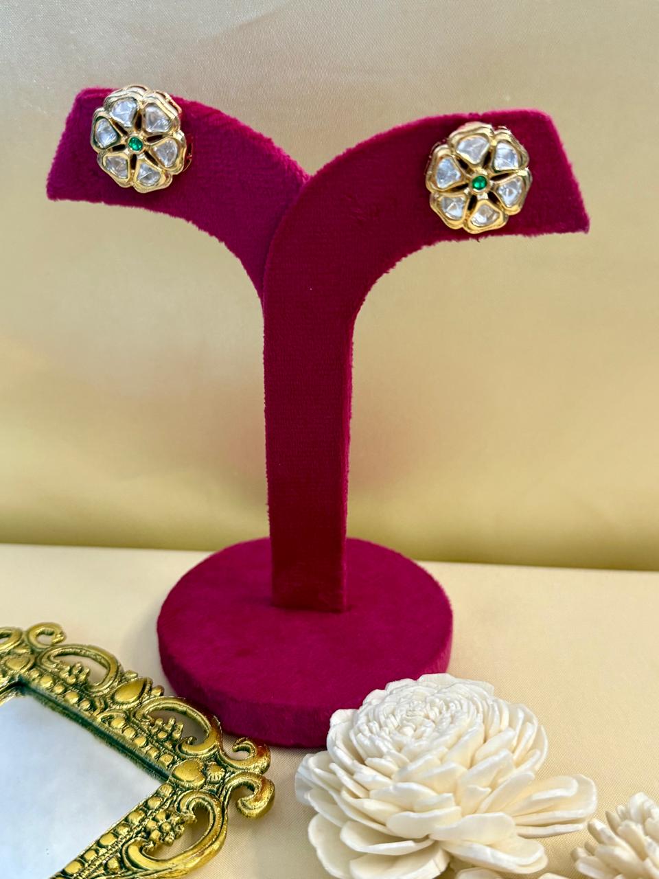 Gracefully handcrafted, these Polki studs reflect timeless tradition with a radiant, antique charm. Perfect to elevate both festive and everyday looks with effortless elegance.