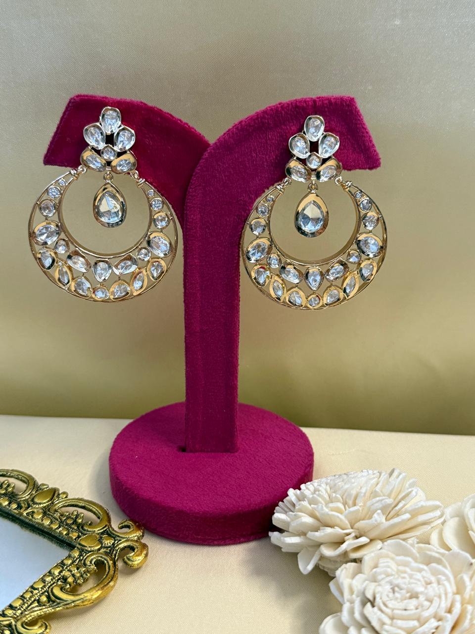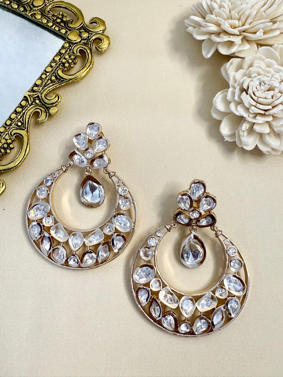 Inspired by timeless royal motifs, these Polki chaandbaalis feature crescent silhouettes with intricate detailing. A graceful statement piece that embodies festive splendour and tradition.