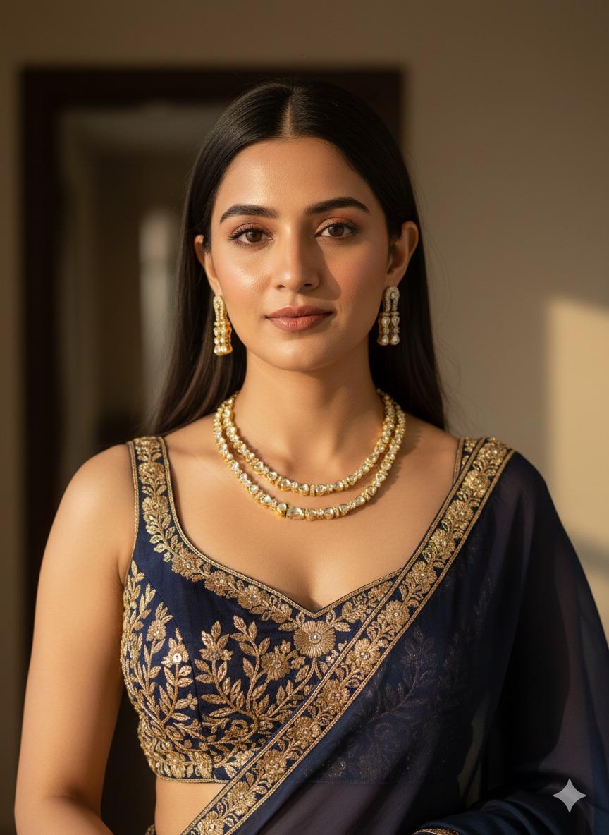 Elegant and understated, this Polki short necklace set pairs delicate craftsmanship with timeless charm — perfect for intimate occasions and festive soirées.