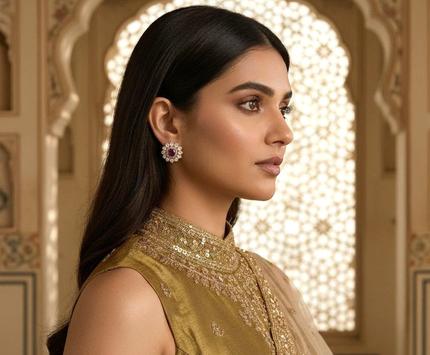 Gracefully handcrafted, these Polki studs reflect timeless tradition with a radiant, antique charm. Perfect to elevate both festive and everyday looks with effortless elegance.