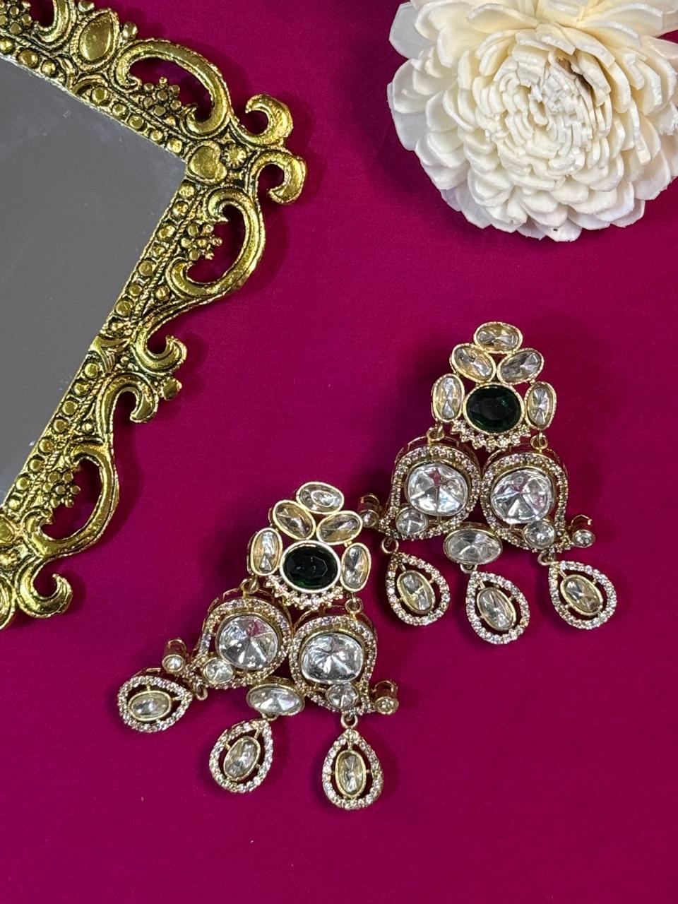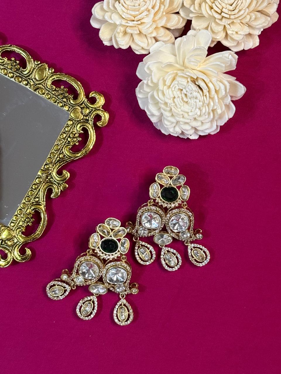 Crafted to dazzle, these statement Moissanite danglers pair rich heritage design with diamond-like sparkle — perfect for all your festive and wedding moments.