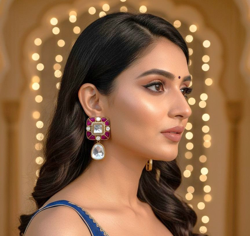 Gracefully handcrafted, these Polki studs reflect timeless tradition with a radiant, antique charm. Perfect to elevate both festive and everyday looks with effortless elegance.