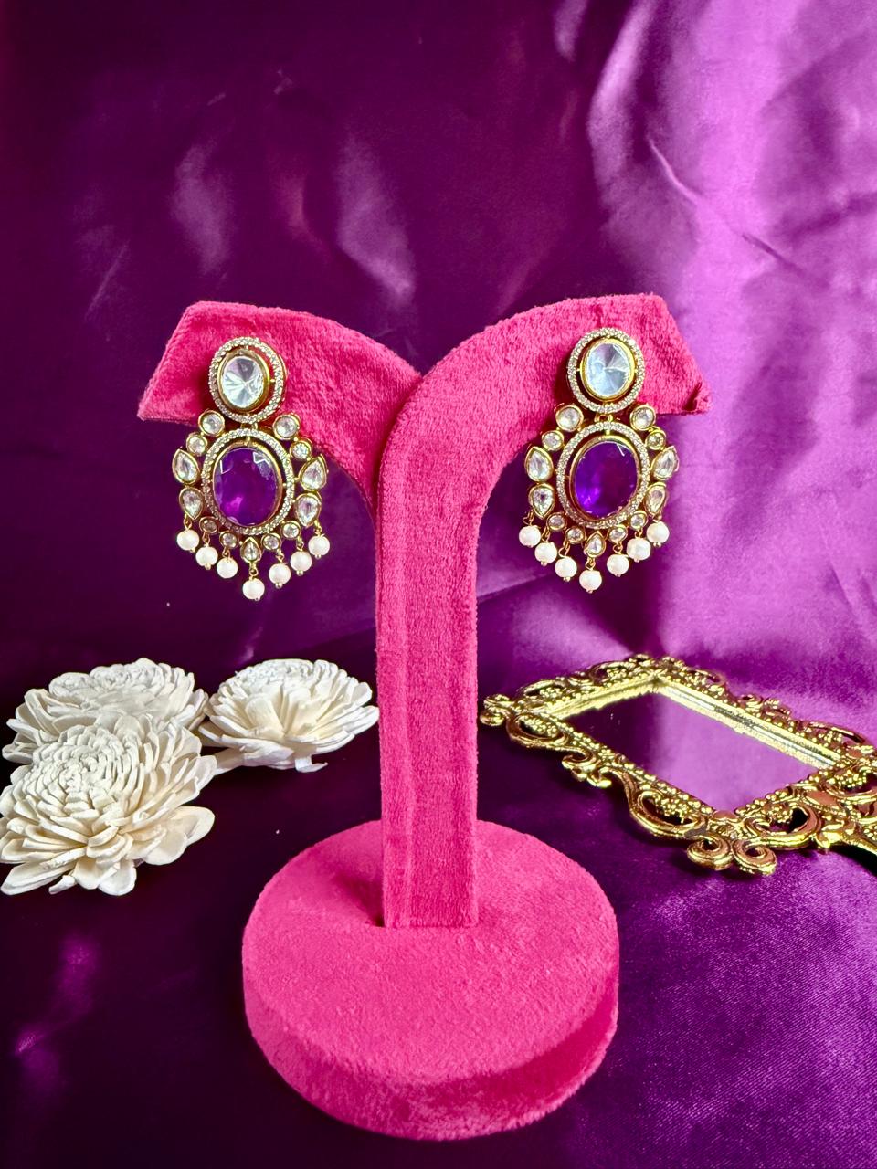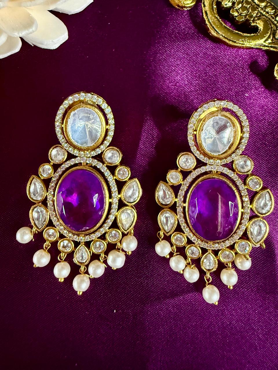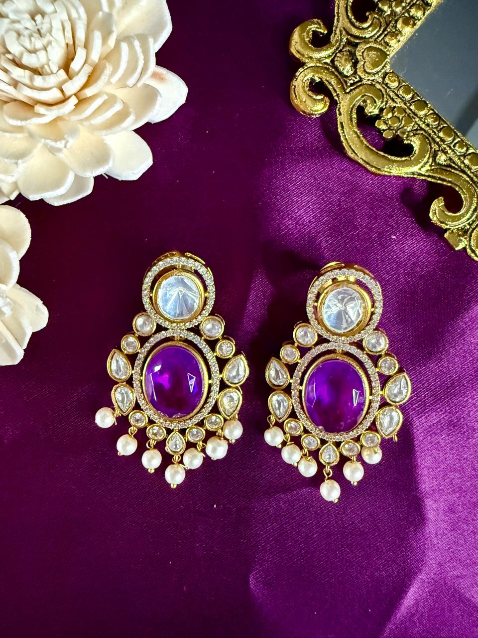Delicately ornate, these Polki danglers bring a touch of regal charm with their flowing silhouette. Ideal for adding grace and grandeur to any festive ensemble.