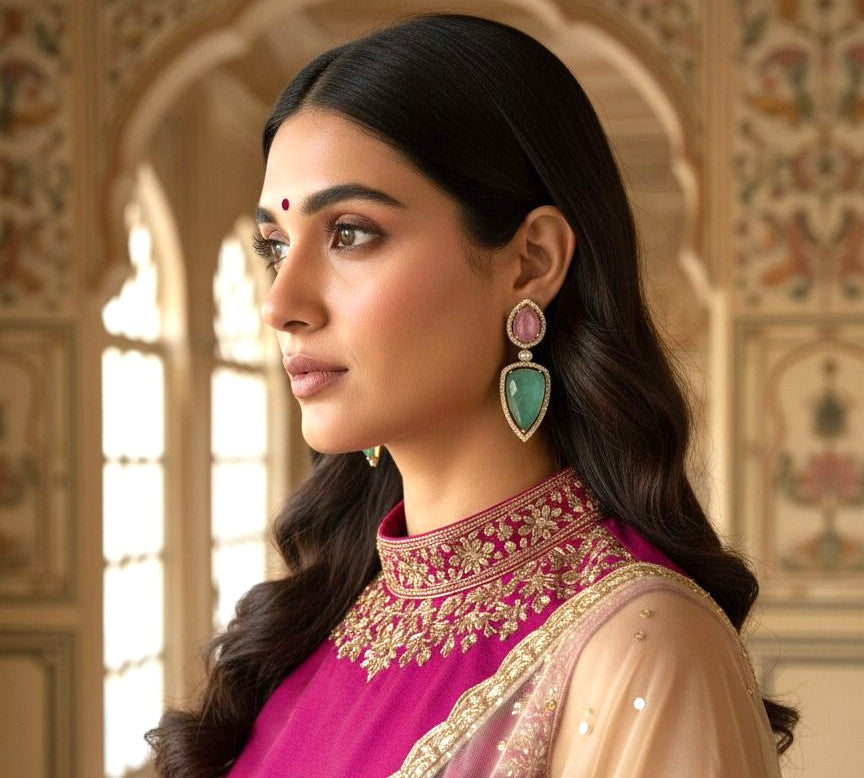 Crafted to dazzle, these statement Moissanite danglers pair rich heritage design with diamond-like sparkle — perfect for all your festive and wedding moments.