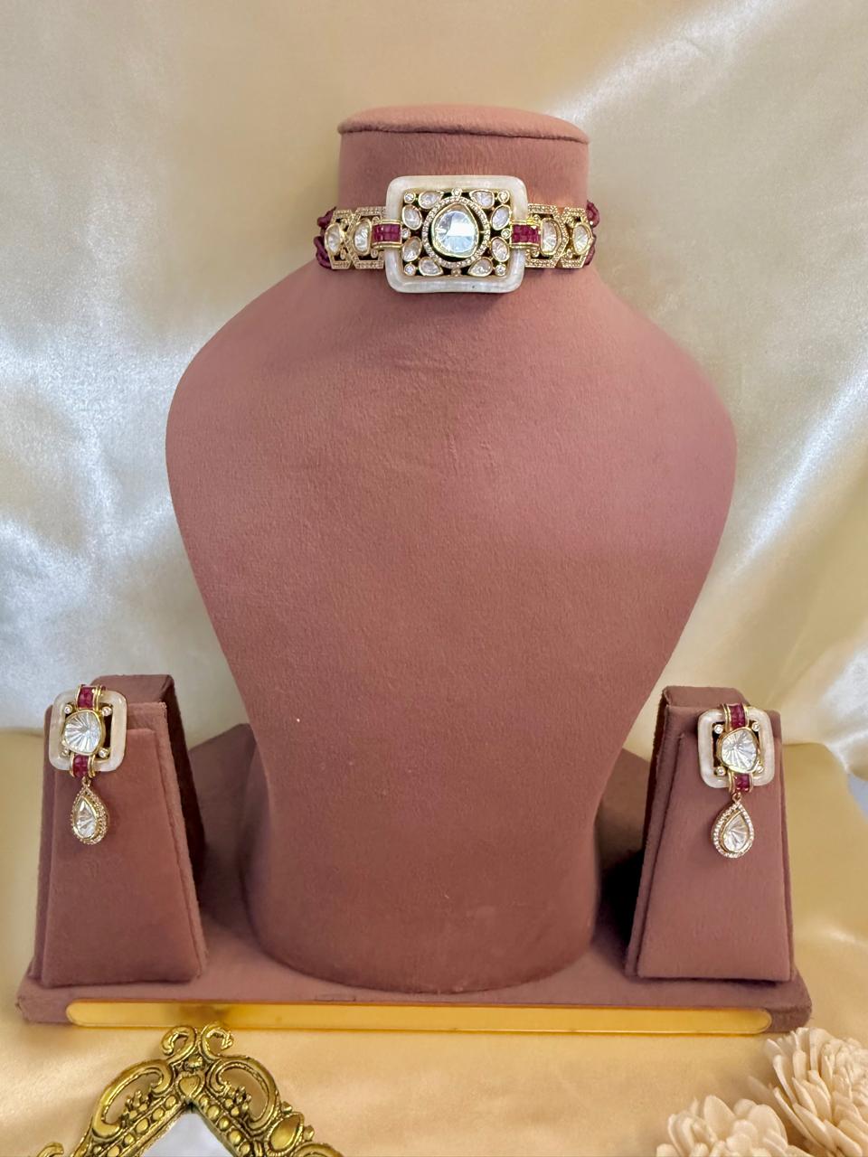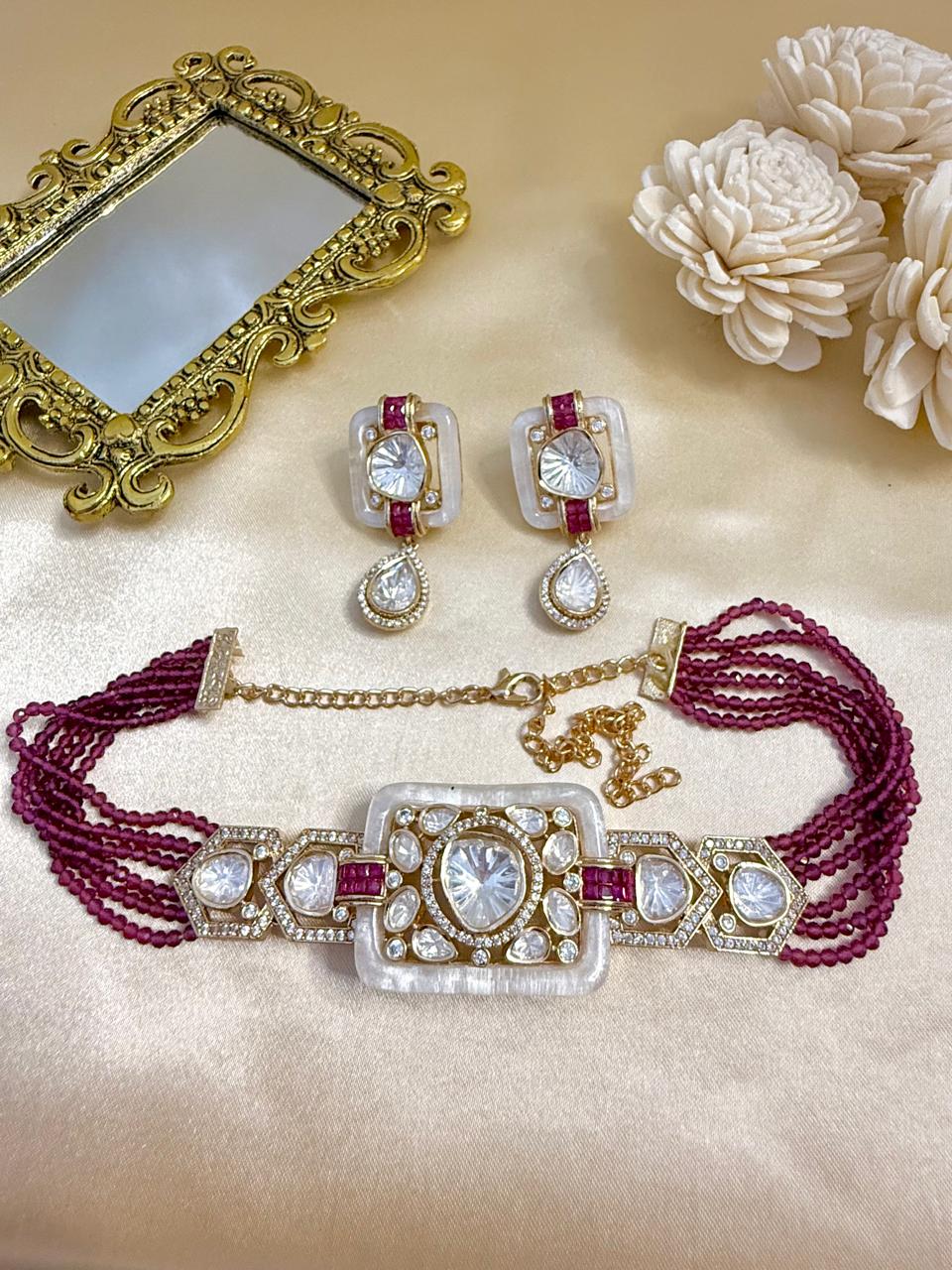 With intricate detailing and a snug, elegant fit, this Polki choker set brings heritage charm to your neckline. A true head-turner for special occasions.