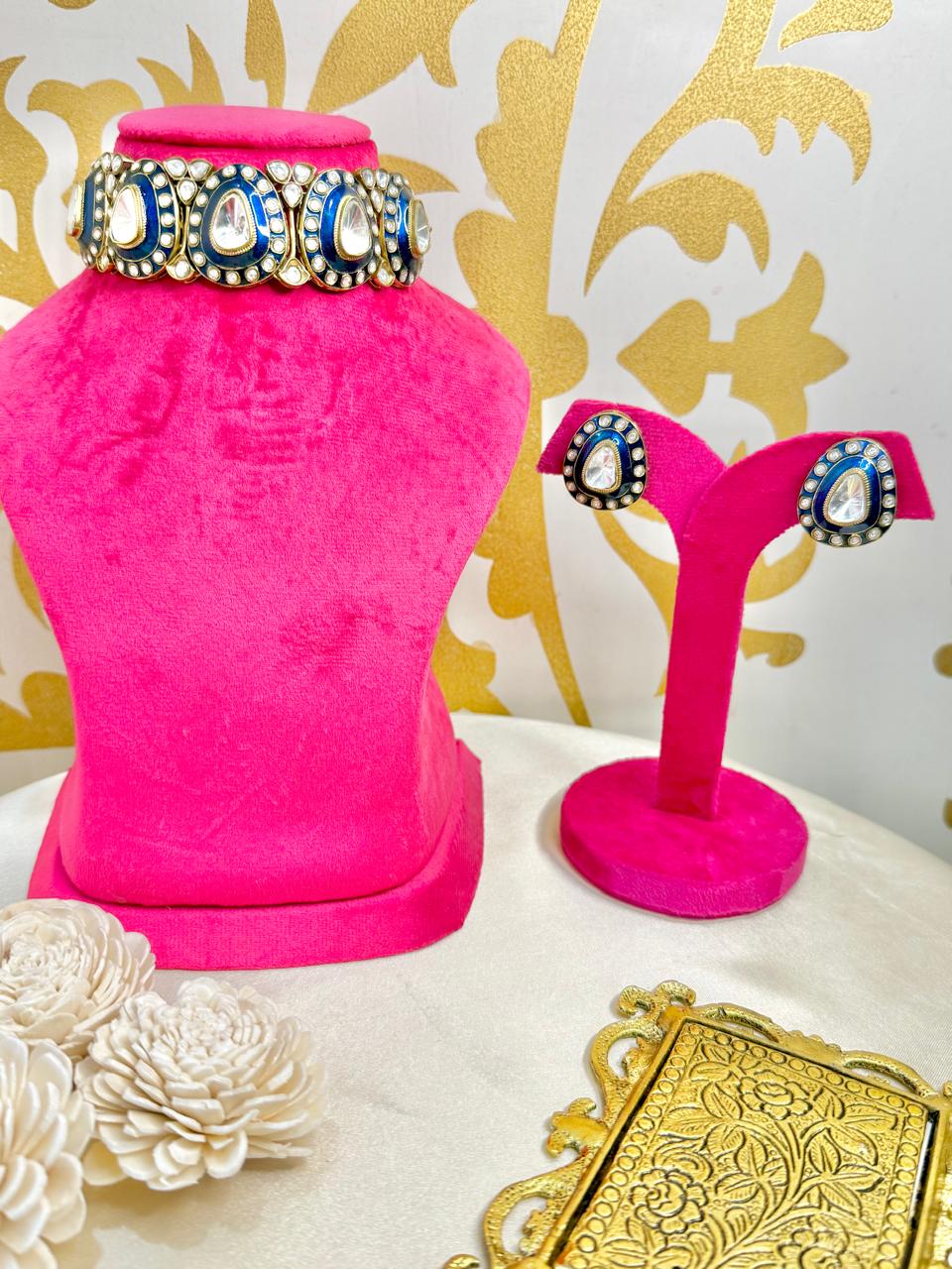 With intricate detailing and a snug, elegant fit, this Polki choker set brings heritage charm to your neckline. A true head-turner for special occasions.