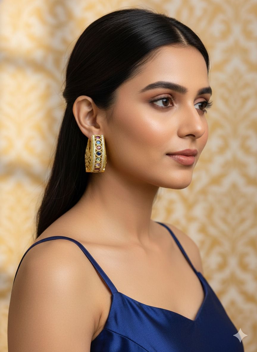 These Moissanite baalis exude vintage elegance with their intricate design and graceful curves. A versatile statement piece to complement both ethnic and fusion styles.