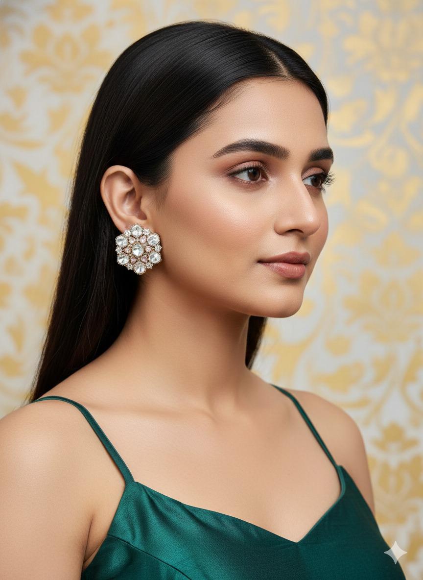 Gracefully handcrafted, these Polki studs reflect timeless tradition with a radiant, antique charm. Perfect to elevate both festive and everyday looks with effortless elegance.