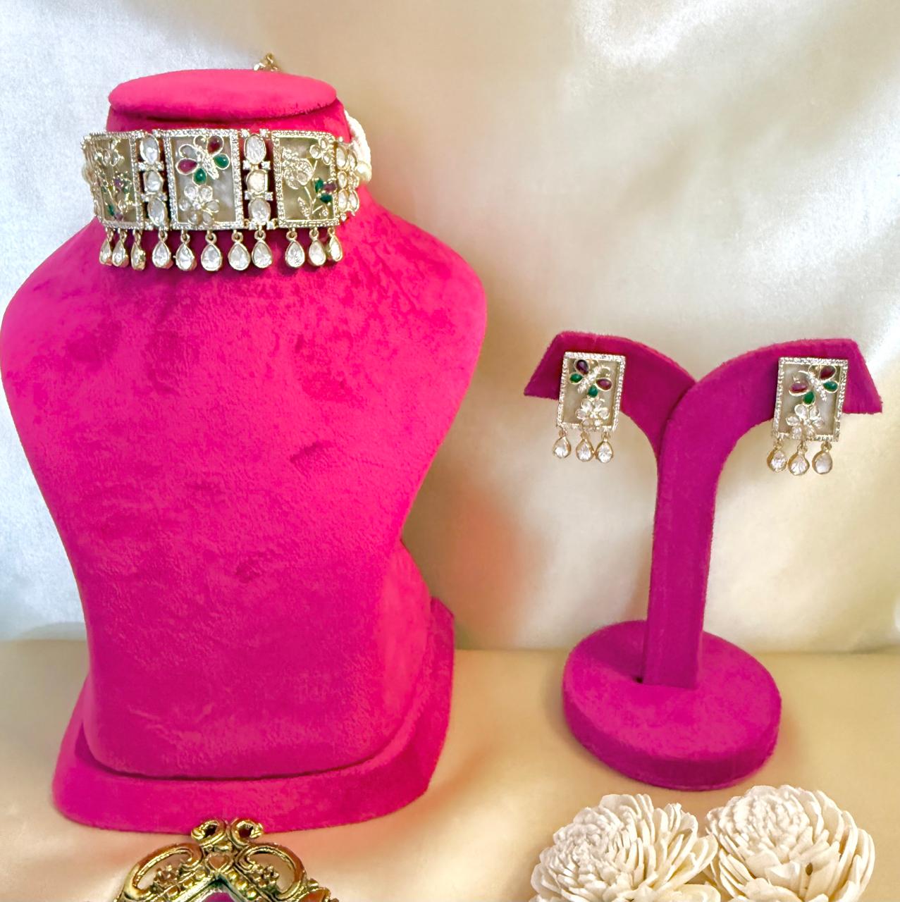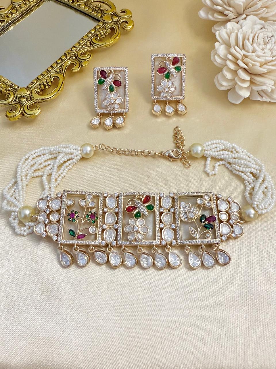 With intricate detailing and a snug, elegant fit, this Polki choker set brings heritage charm to your neckline. A true head-turner for special occasions.