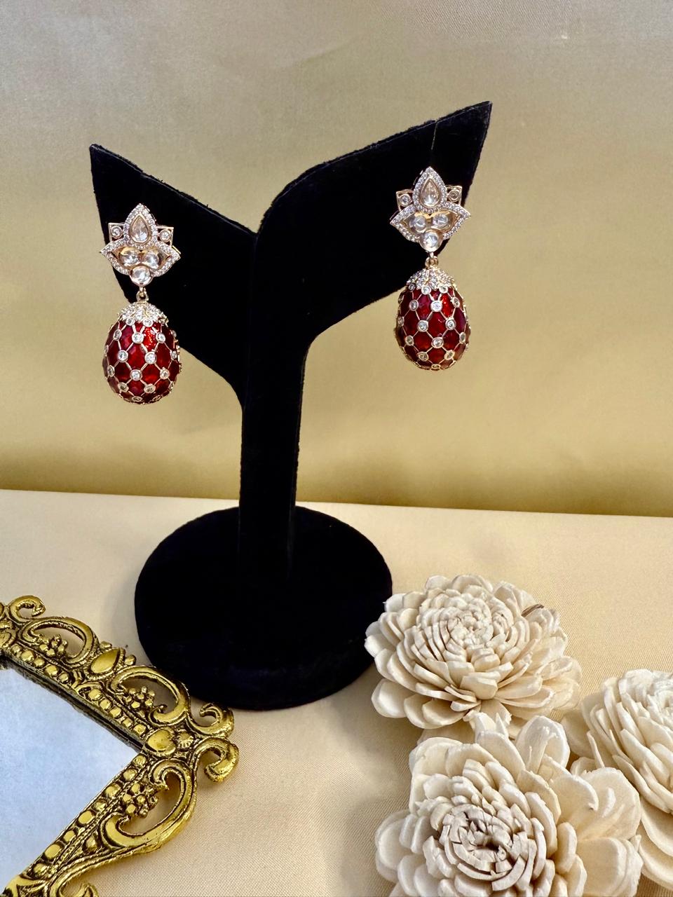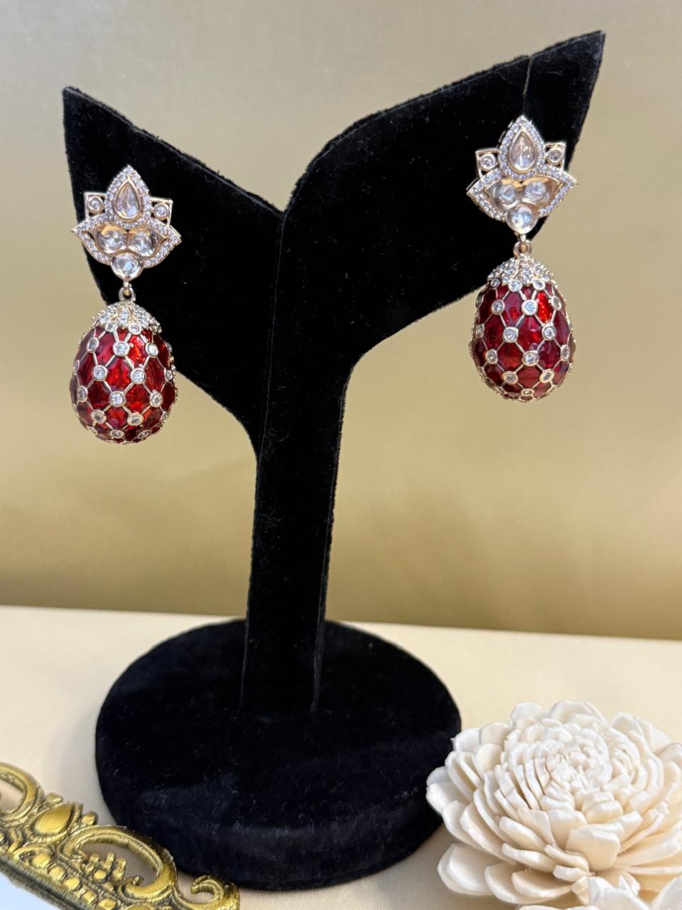 Delicately ornate, these Polki danglers bring a touch of regal charm with their flowing silhouette. Ideal for adding grace and grandeur to any festive ensemble.